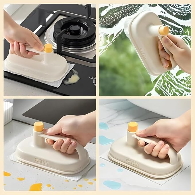Powerful kitchen cleaning brush with non-slip handle and washable magic cloths. Scrubs pots, pans, sinks, and more. Easy to use, versatile, and perfect for all home cleaning tasks.