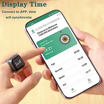 Sync your Digital Iqibla Zikr Ring with your smartphone via Bluetooth to receive five daily prayer time reminders, helping you stay spiritually on track. -